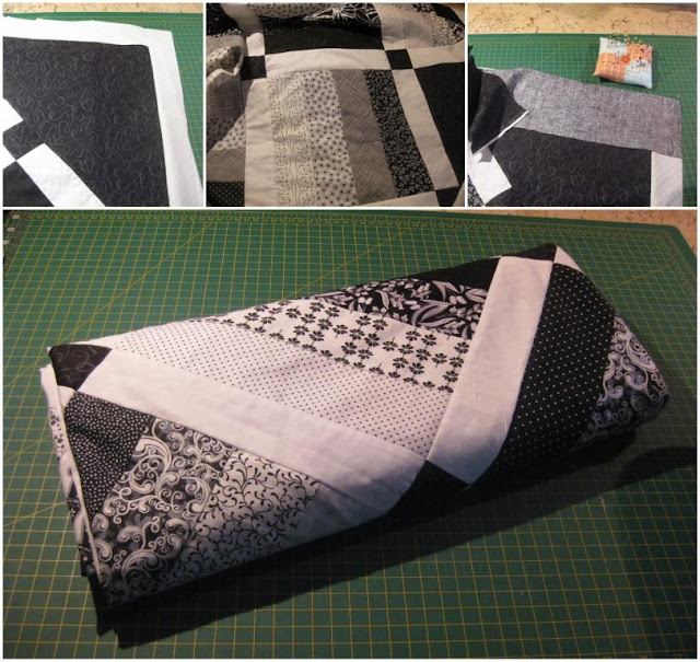 Black and whites always make a great quilt in any pattern. I'm sure hubby will love it....